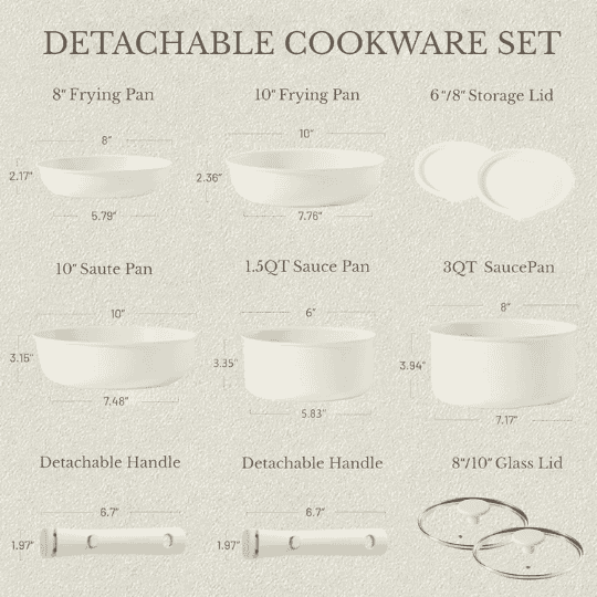 11 PCS Kitchen Cookware Sets with Detachable Handle